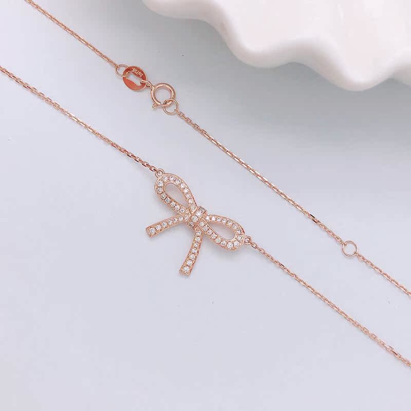 18K gold diamond pendant butterfly knot diamond necklace with diamond lock bone chain small fresh rose gold lock bone chain