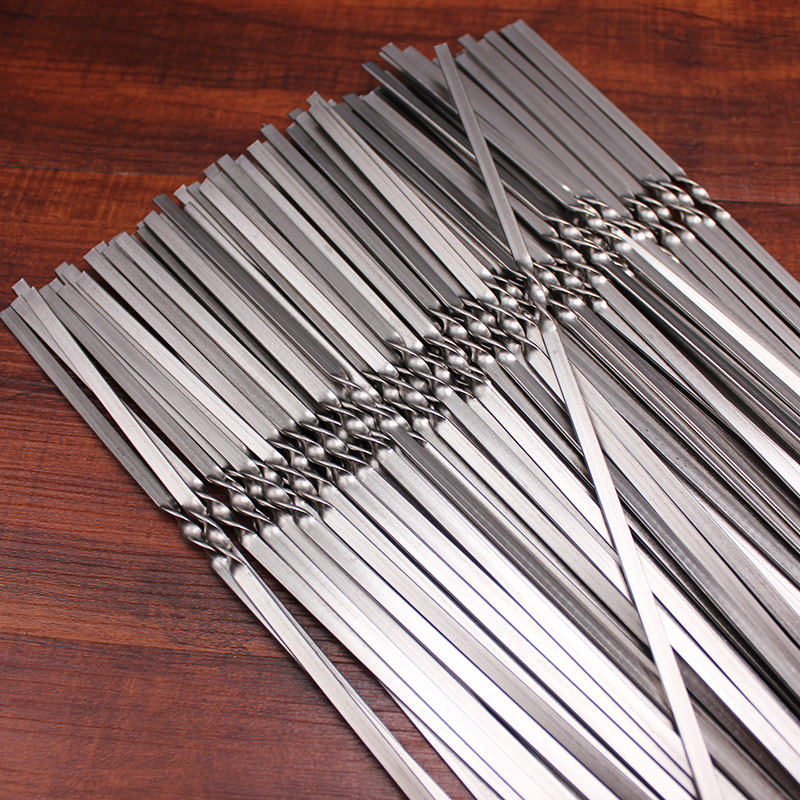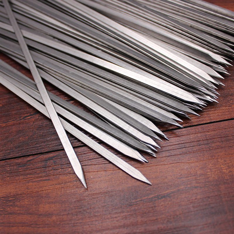 Non-magnetic stainless steel barbecue stick flat 39cm wide thickened shish kebab wide brazing iron brazing outdoor barbecue tool needle