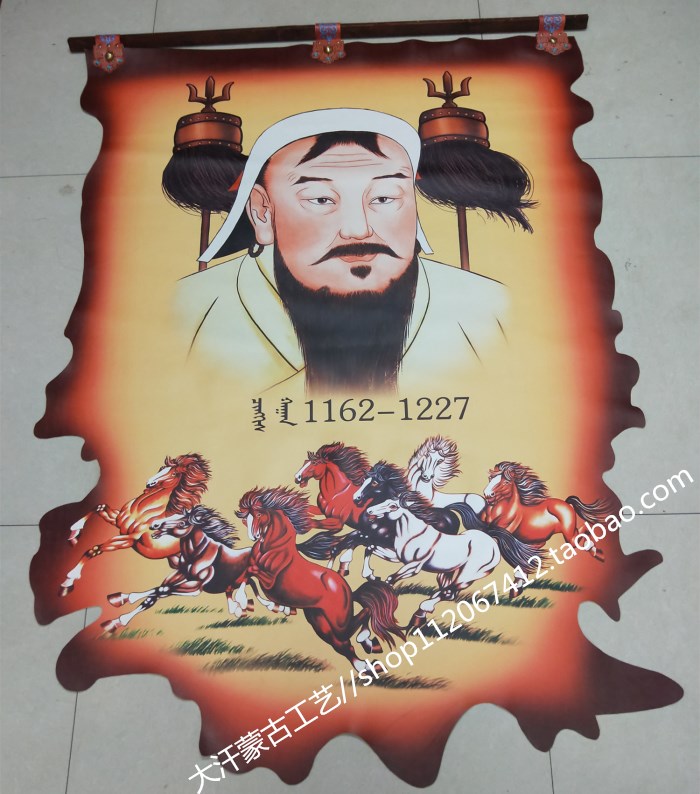 Genghis Khan skin painting Mongolian craft feature gift decoration color hanging painting 1.2 * 1.6 meter batch
