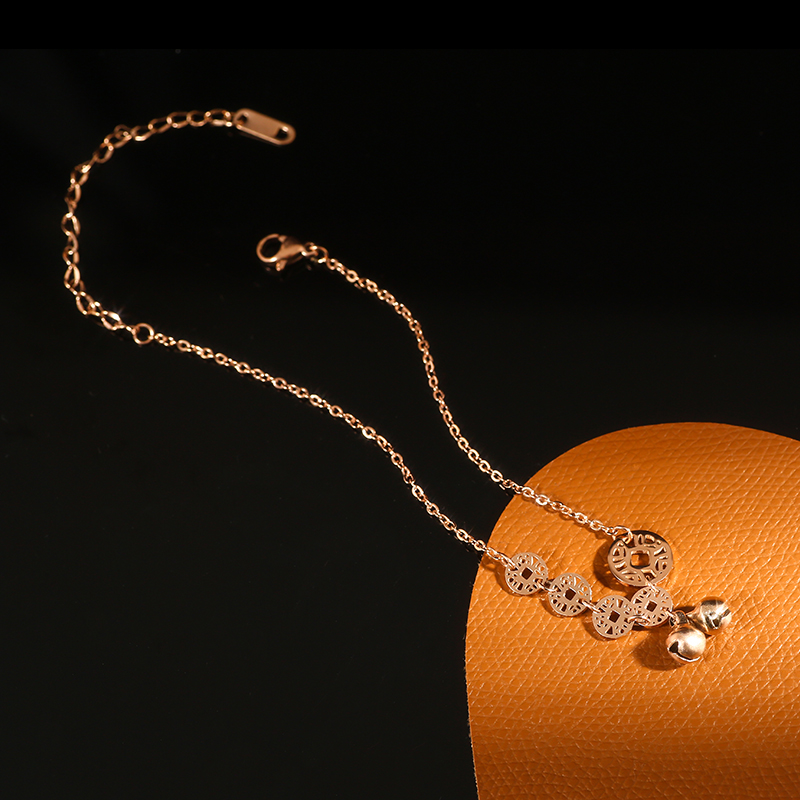 Wudi copper money anklet women 2021 new ins lucky 18k rose gold fairy bell lengthened titanium steel does not fade