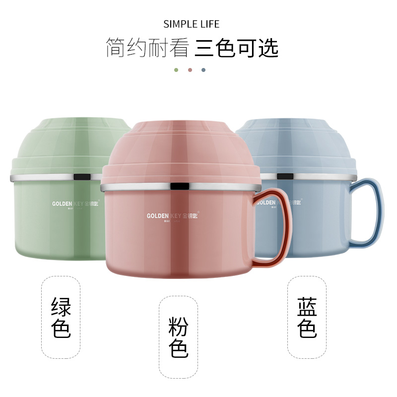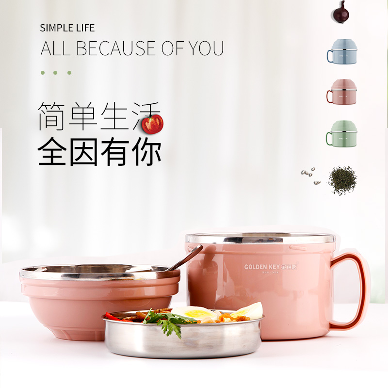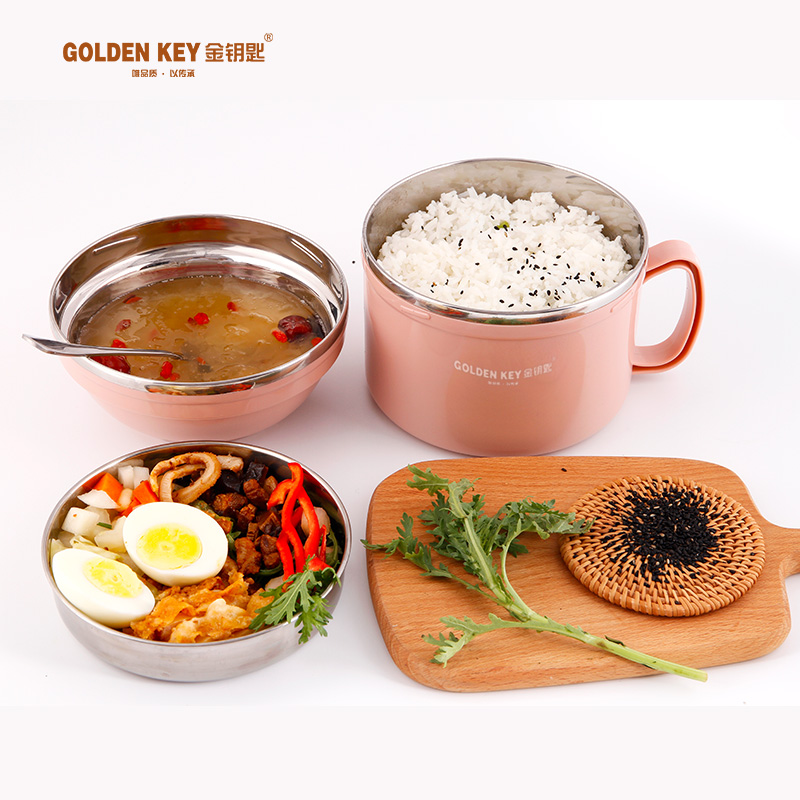 Gold Key Stainless Steel Double Layer Lunch Box Bowl Single Student Dormitory Blister Noodle Bowl With Lid Large Stainless Steel Lunch Box Fast Food Cup