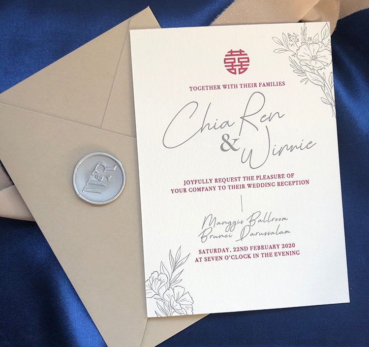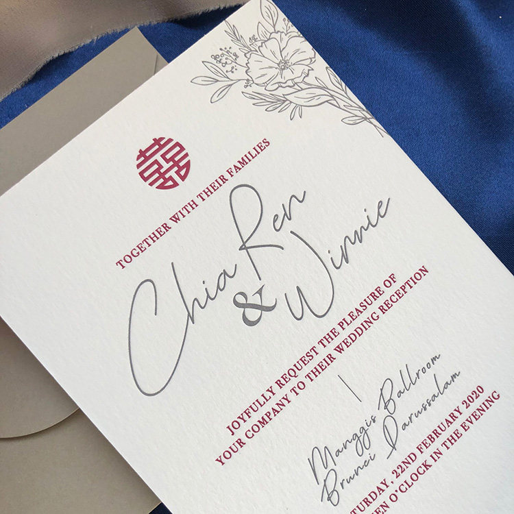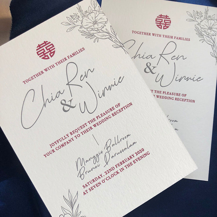 LETTERPRESS WEDDING INVATATION Thickened convex version printed cotton paper invites Cambodia