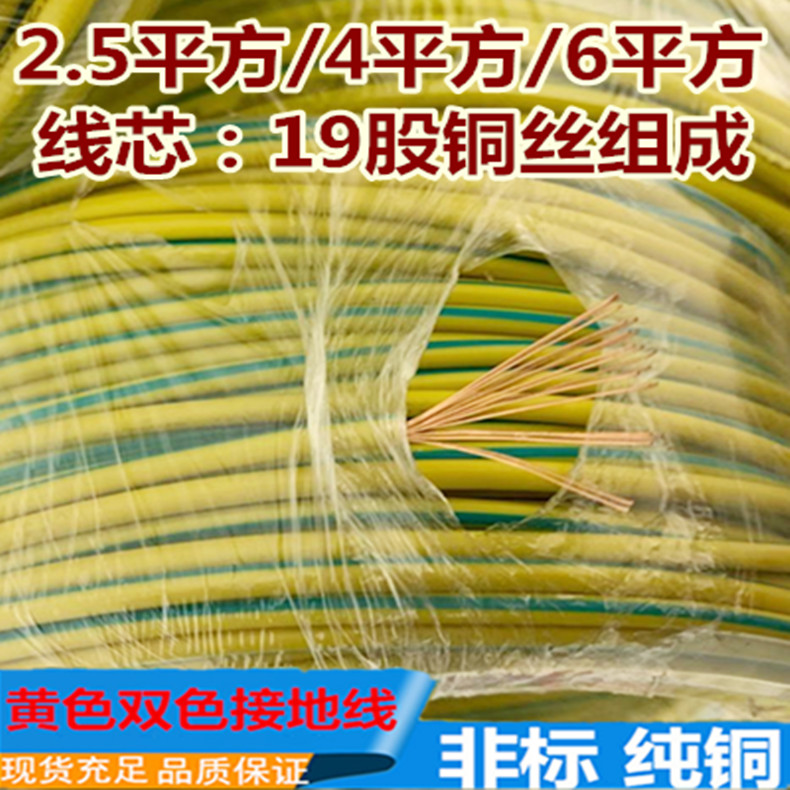 Full copper yellow green bicolor ground wire BVR1 1 5 2 5 4 6 Square multi-strand soft photovoltaics grounding wire