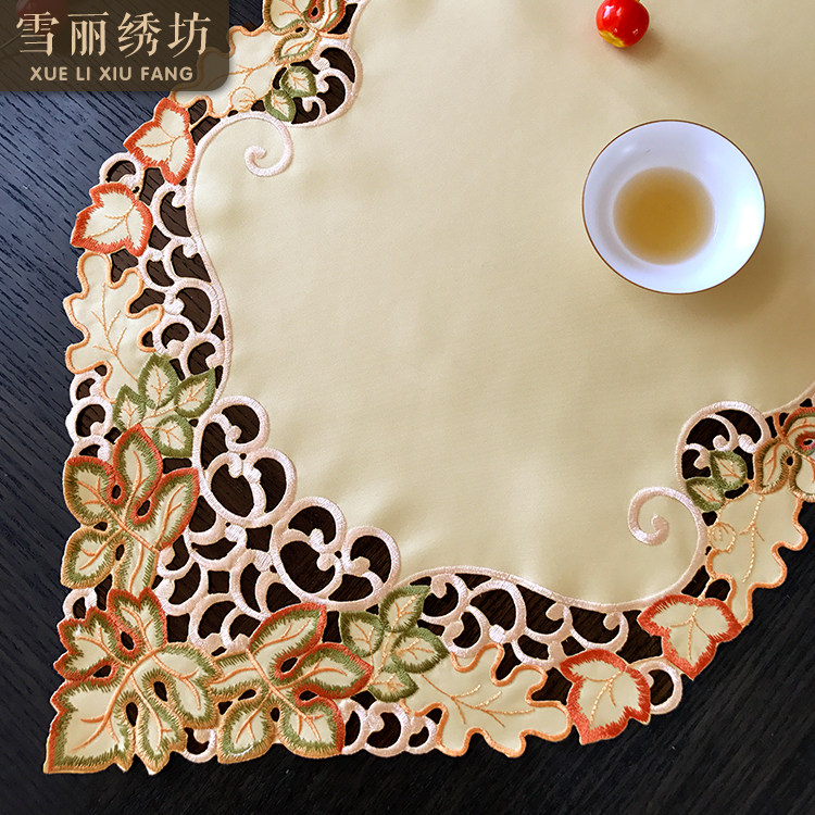 Table cloth Tea Towel Table Table Main Cabinet TV Cabinet Roundtable Cloth Euro Embroidery Maple Leaf
