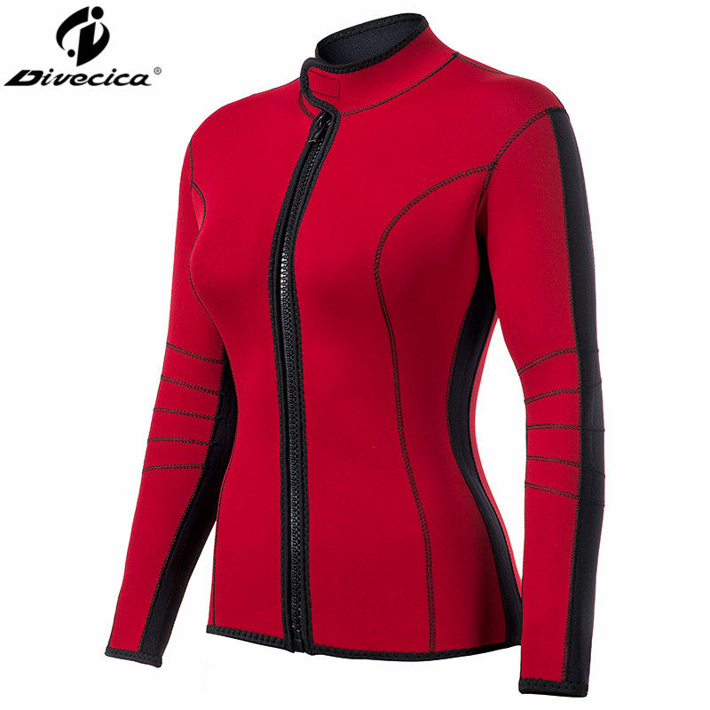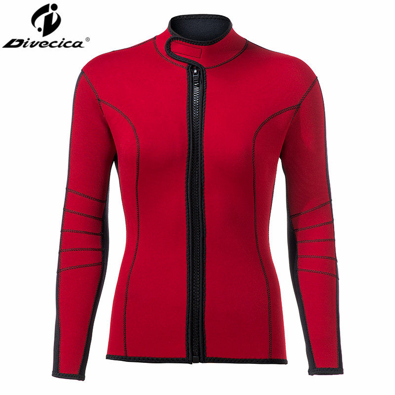Divecica New offer Tailored Red Wetsuit Wetsuit Wetsuit 3mm Girl Long Sleeve Diving Blouse