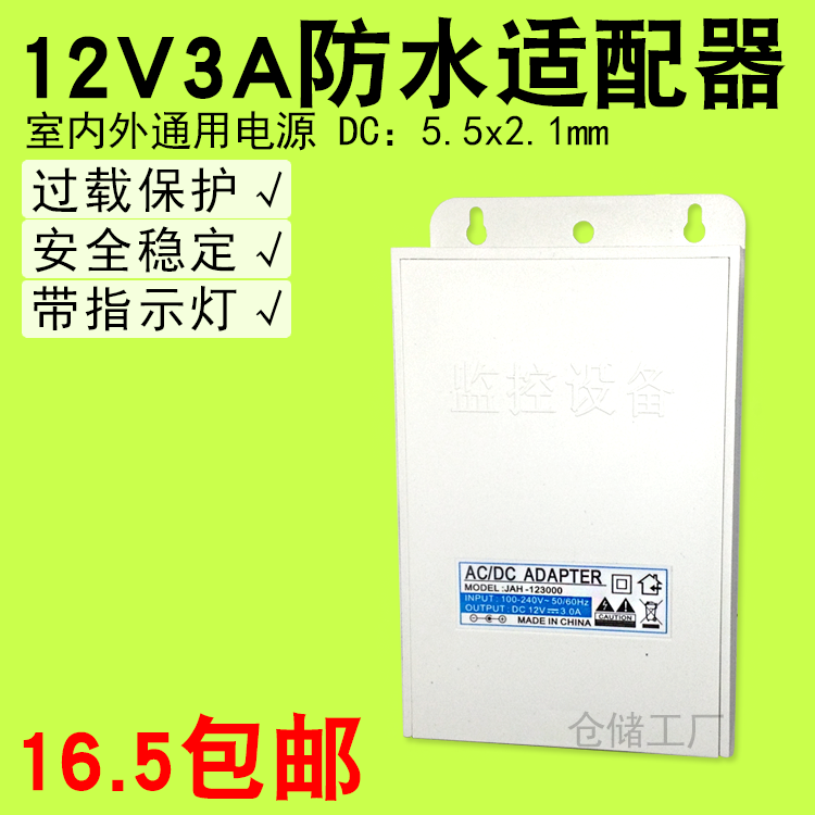 12v3a monitoring waterproof power supply adapter indoor out 12v transformer DC head DC universal power supply tank