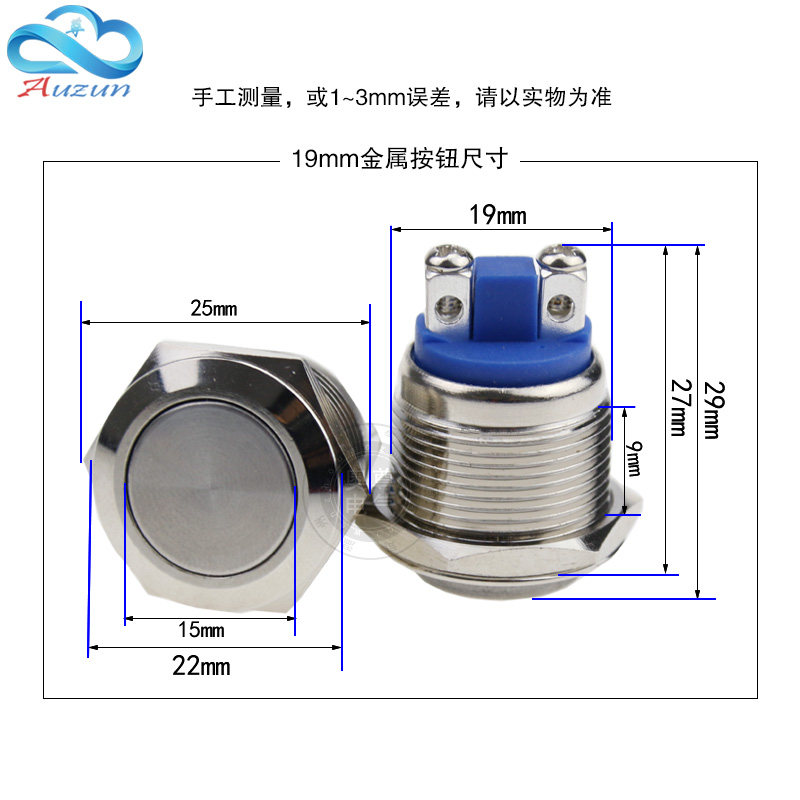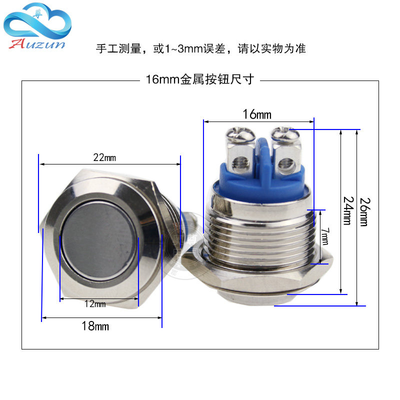 16MM self - reset metal button waterproof 19mm2mm dot switch screw feet reset switch