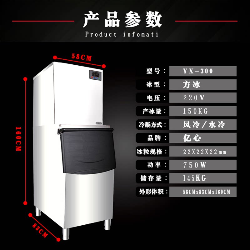 100 million Heart commercial large ice maker's milk tea shop 150kg fully automatic fast making ice cubes machine