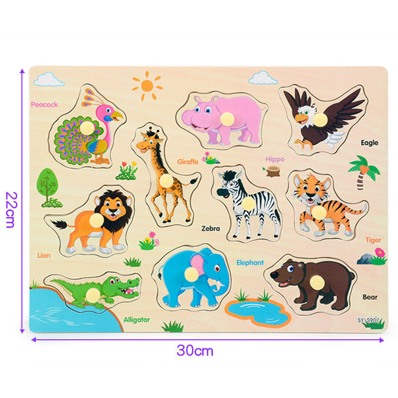 Digital Letter Hand Grip Plate Children Early Teach Cognition Animal Jigsaw Puzzle Baby Wooden Jigsaw Puzzle Puzzle