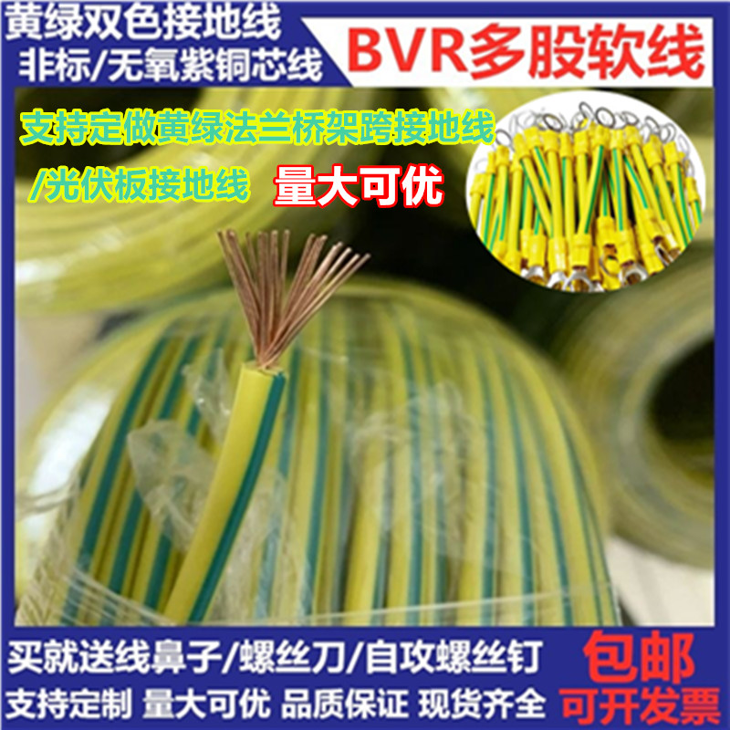Yellow-green grounding grounding line bicolor wire BVR 2 5 square multi-strand soft line full copper national line bvr 2 5mm grounding wire