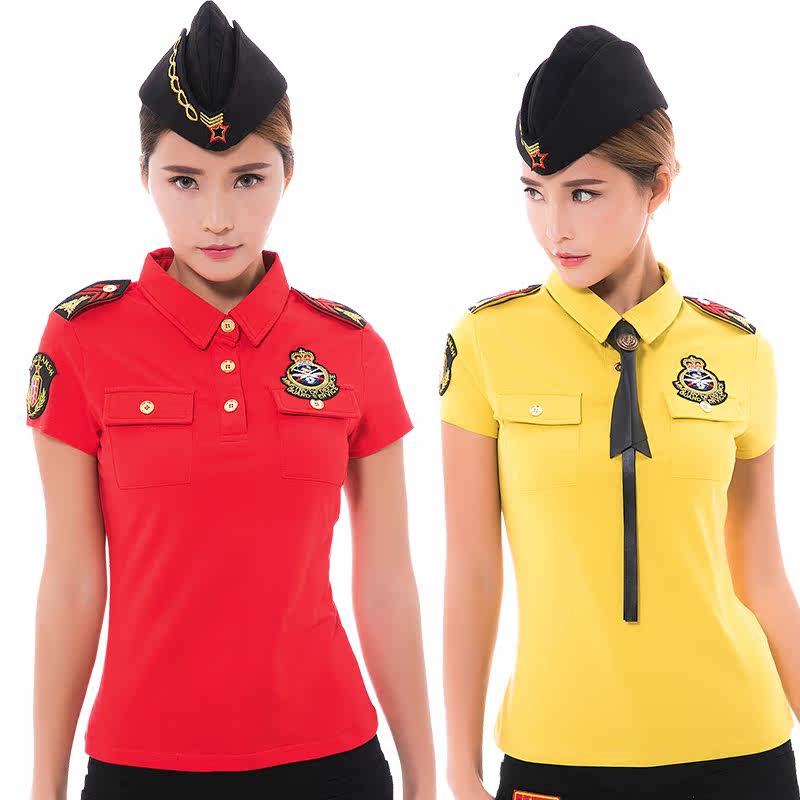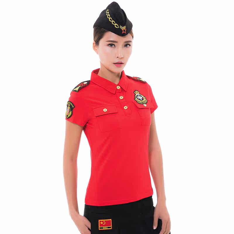 2018 Spring Summer New Water Soldiers Dance Women's Turncoat with Shoulder Chapters Short Sleeves T-shirt Outdoor Body Square Dance out of the suit