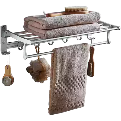 Punch-free space aluminum alloy bathroom towel rack powder room holder wall-mounted perforated movable folding bath towel