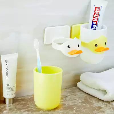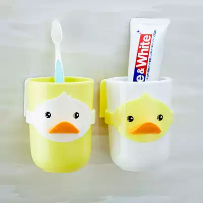 Cartoon children's toothbrush holder tooth rack shelf Wall-suction wall-mounted cute punch-free toothbrush tooth cup set