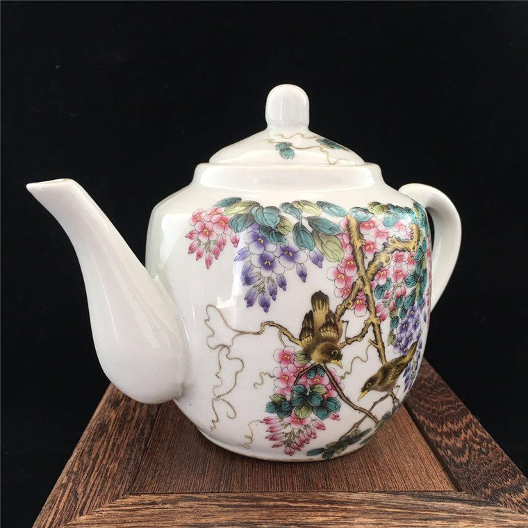 Cultural Revolution Pink Flowers Bird Teapot Antiques Porcelain Comeback Ancient Objects Ancient Play collection to play jade Nostalgia Factory Goods Concessions-Taobao
