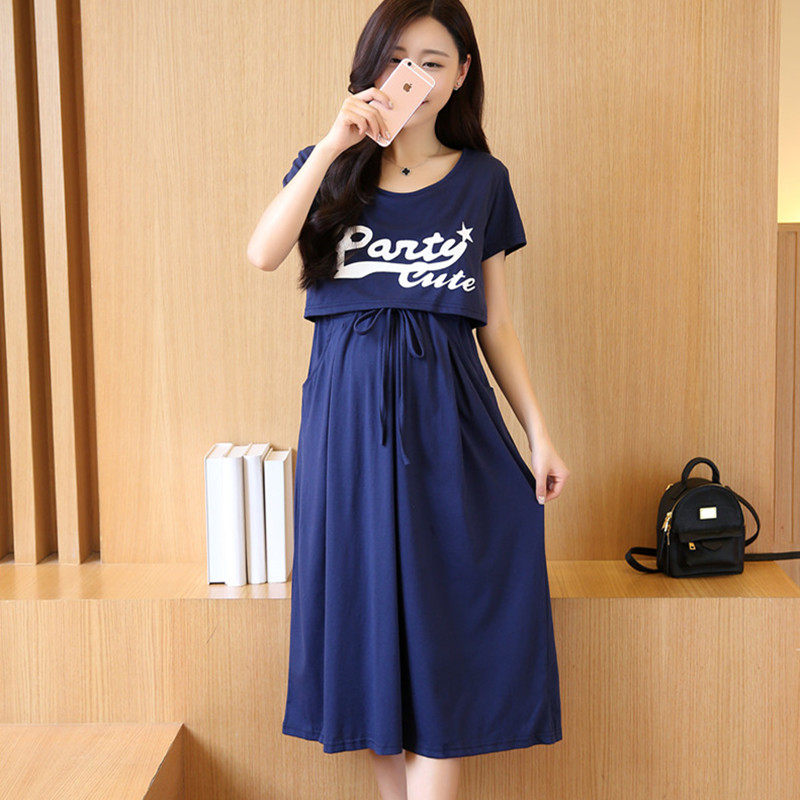 2023 New Pregnancy Woman Dress Spring Dress Dress Mid Dress Medium Long pure cotton outgoing Laced Coat Blouse Short Sleeve Summer Dress Long Skirt-Taobao