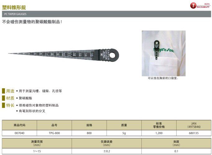 Japan SK Niigata Seiki TPG-800KD TPG-700SL plastic feeler gauge gap gauge taper 700A
