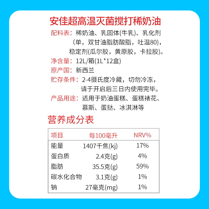 Anjia light cream 1L*12 box New Zealand imported animal sex mounted cream whole box express
