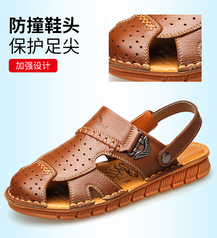 Real Leather Cow Leather Online Cattle Gluten Bottom Sandals Men's Beach Shoes Baotou Casual Dual-use Cool Drag Non-slip Middle Aged