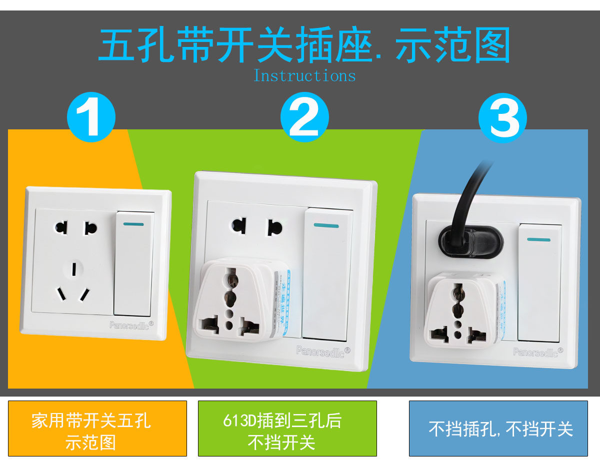 Three-foot-to-two-hole port version plug socket converter Three-foot home three-plug two-phase three-phase hole three-hole