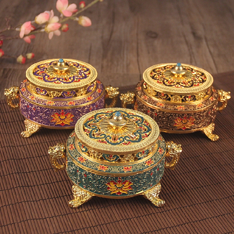 Hidden Jingtai Blue Ring Aroma Furnace Alloy copper sandalwood Incense Burner color Incense Stove Lotus Stove Lotus Stove Room tea Pendulum Piece