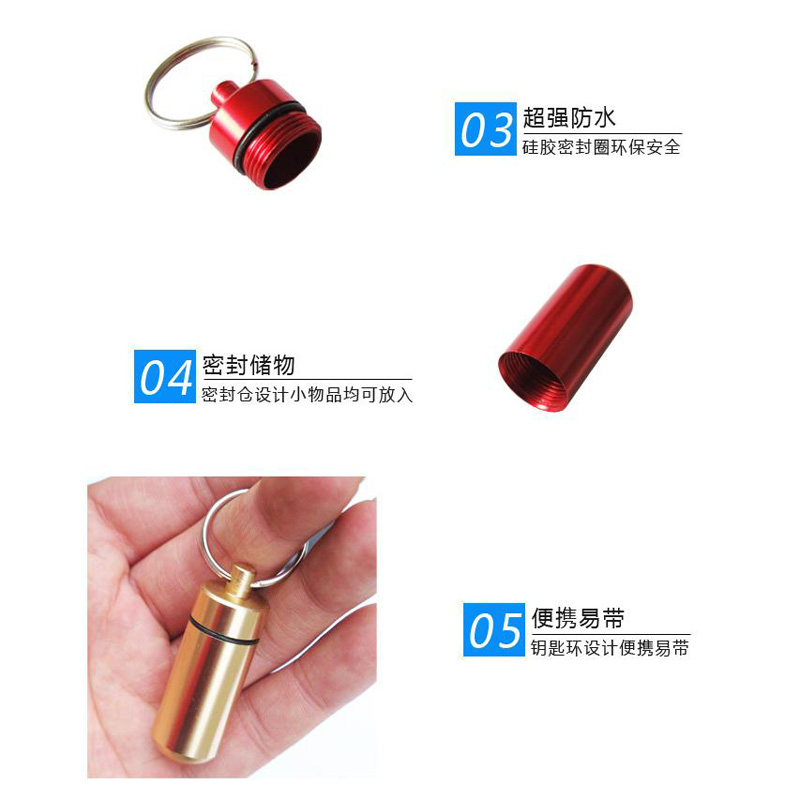 Aluminium alloy outdoor portable waterproof small medicine bottle first aid capsule fishing small bottle travel kit keychain sealing case