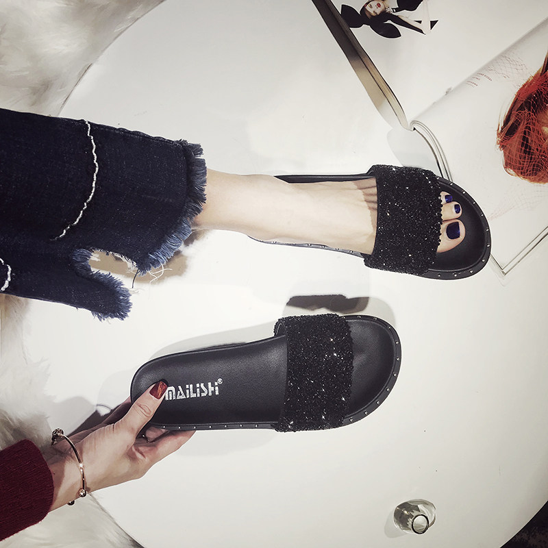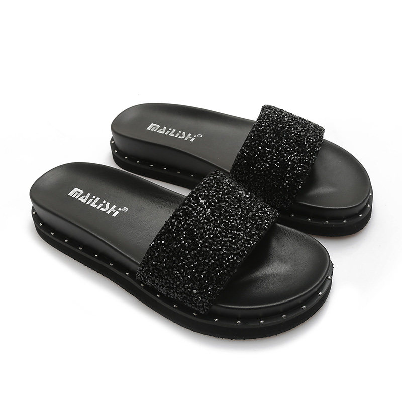 Slippers female summer wear 2021 new muffin thick bottom word drag rhinestone fashion Korean version wild net red cool drag woman