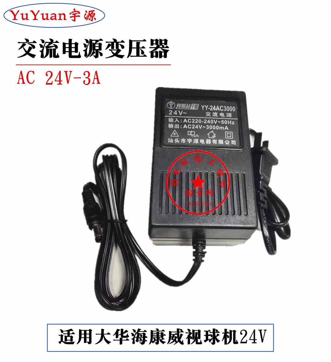Yuyuan surveillance camera lens power supply 220V to AC AC24V3A ball machine transformer Haidahua waterproof