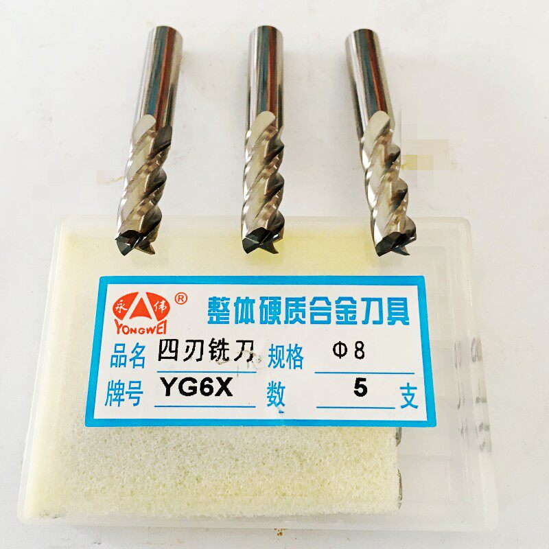 Yongwei Solid carbide tungsten steel milling cutter Straight shank end mill 4-edge milling cutter 2 3 6 8mm-20mm plane
