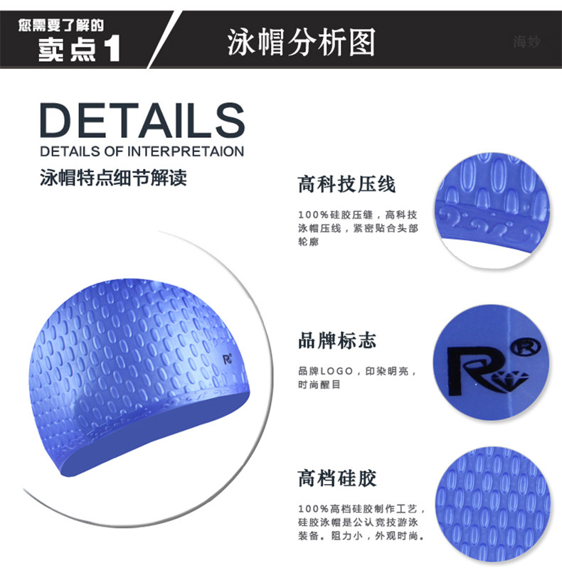 Rui and water drop swimming cap Large size male and female long hair Head care ear uplifting Number of silicone Waterproof Hair Care Bubble Swimming Cap
