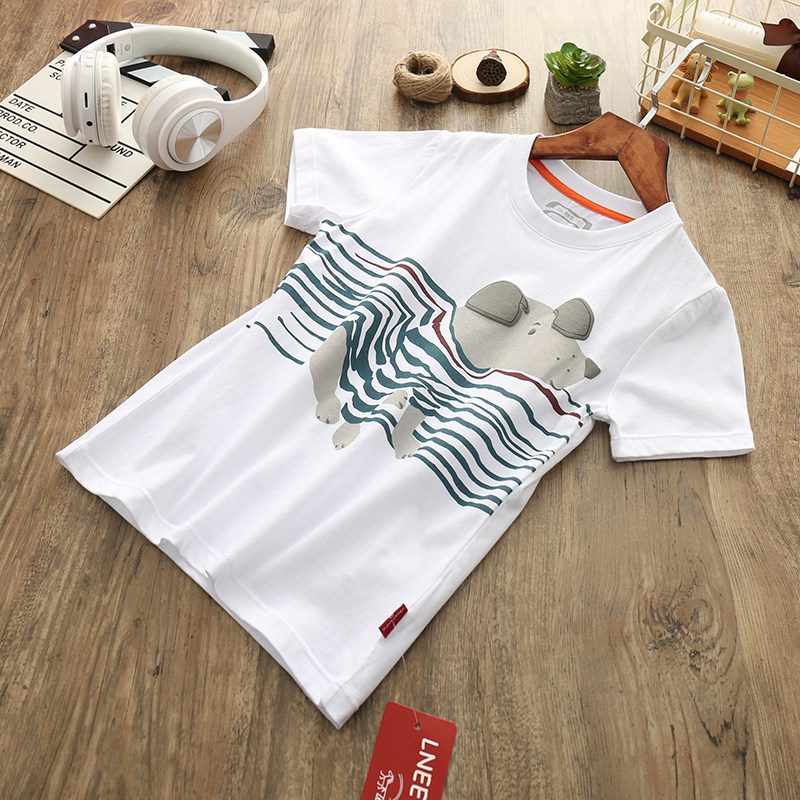 Children's Short Sleeve T - shirt Pure Cotton Summer 2018 New Baby Playing a Dress Round Boy Half - sleeved Top