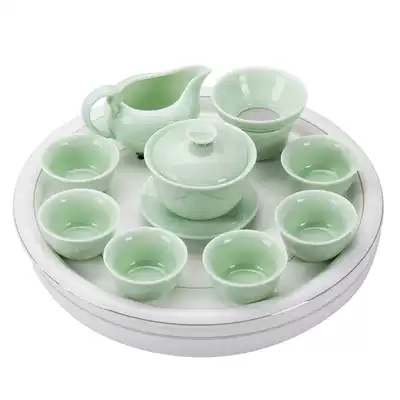 10 celadon cover Bowl Fu belt ceramic plate celadon cover Bowl Fu set up famous mountain Dachuan disc White celadon cover Bowl Fu set up famous mountain Dachuan disc black (LOSS rush limited time to buy) 10 celadon bamboo rhyme tea
