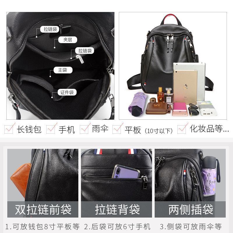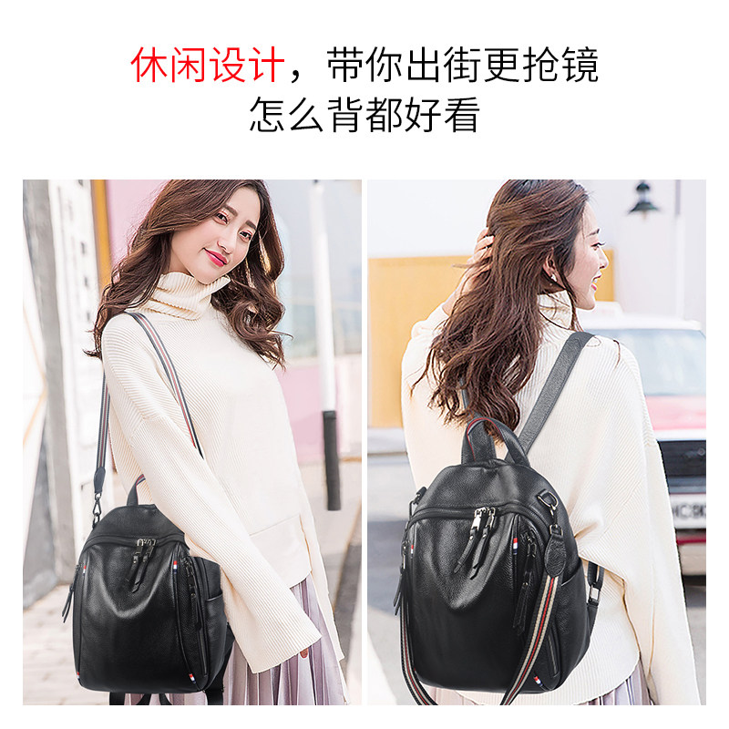 Head - skin double shoulder bag female leather 2023 new tide - and - soft - leather dual - use female bag to work tourist backpack