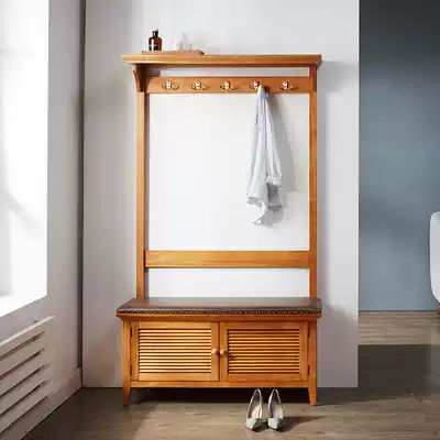 Solid Wood hanger shoe cabinet integrated floor bedroom home living room shoe bench clothes rack door shoe rack