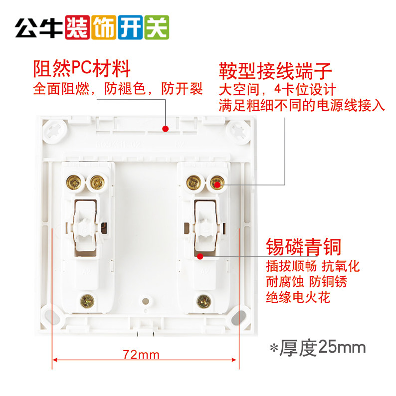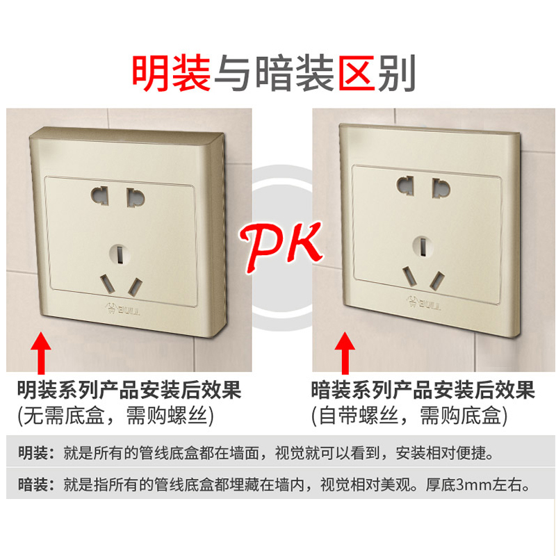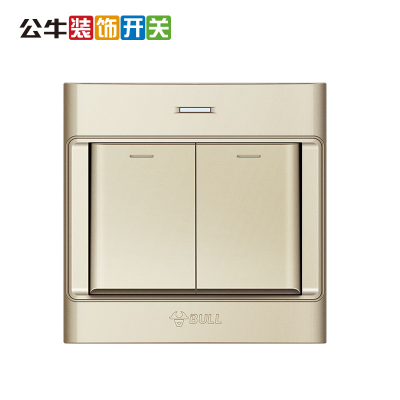 Bull Ming Dress Switch Socket Ii Open Double Cut Wall 2 Two Open Double Switch Duplex Power Supply Home Switch Face Board Gold