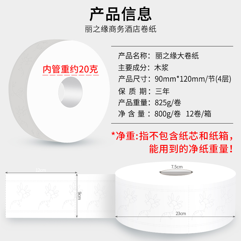 Rizhi Edge 800 gr Commercial Large Roll Paper Toilet Toilet Paper Hotel Guesthouse Toilet Paper Home Whole Box