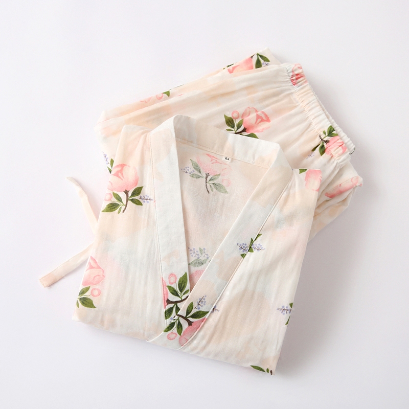 Spring Summer day Faculty full cotton gauze Short sleeves Long pants and pyjamas ladies Pure cotton Japanese style Sweat Steamed Clothes