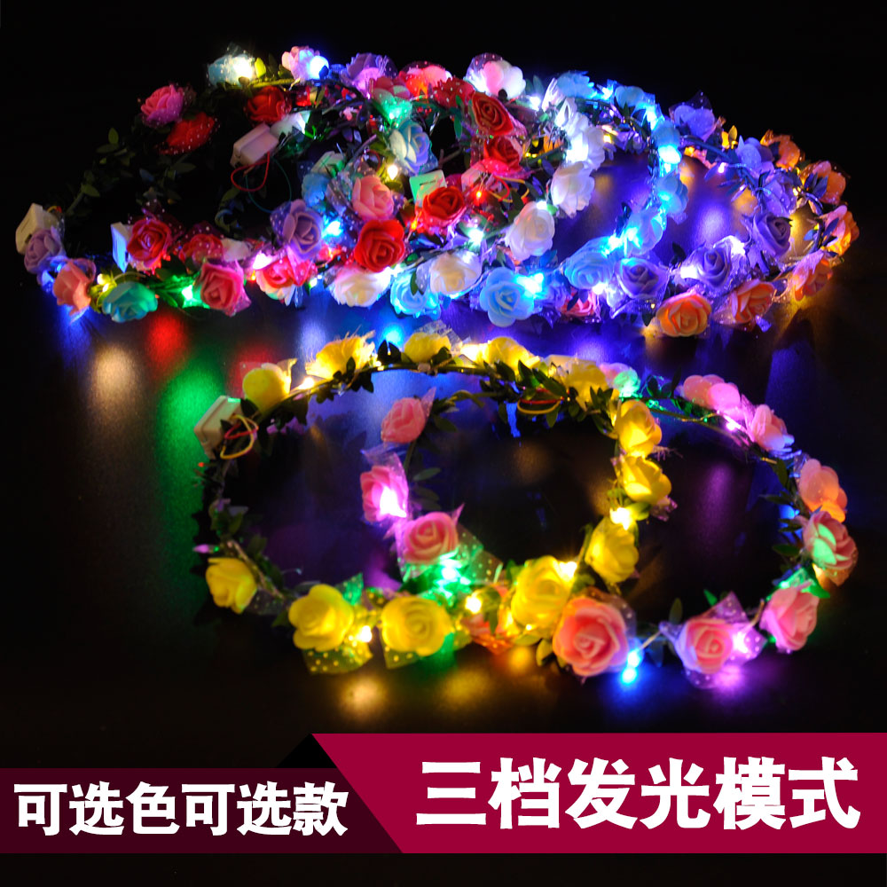 Luminous flower ring flash head ring rattan hair shiny LED light string Birthday Party Party Night Light Son Hair Accessories Hair Stirrup
