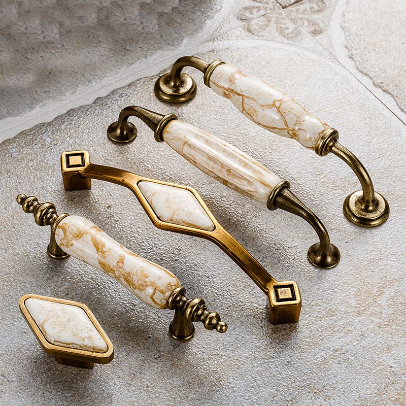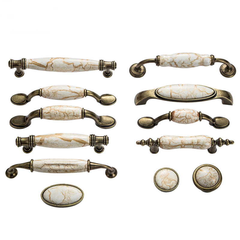 Hole spacing 16 76 96 128 pastoral marbled ceramic handle antique cabinet drawer wardrobe door small handle