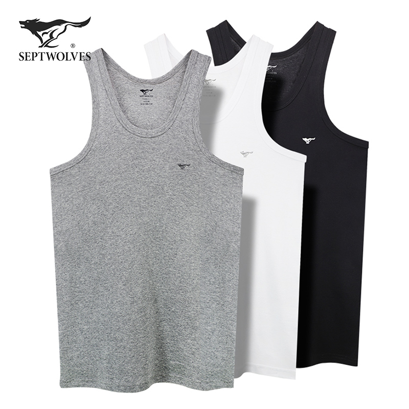Seven wolves cotton vest men's undershirt autumn sportswear bottoming coat sweat-absorbent T-shirt cotton sleeved shirt