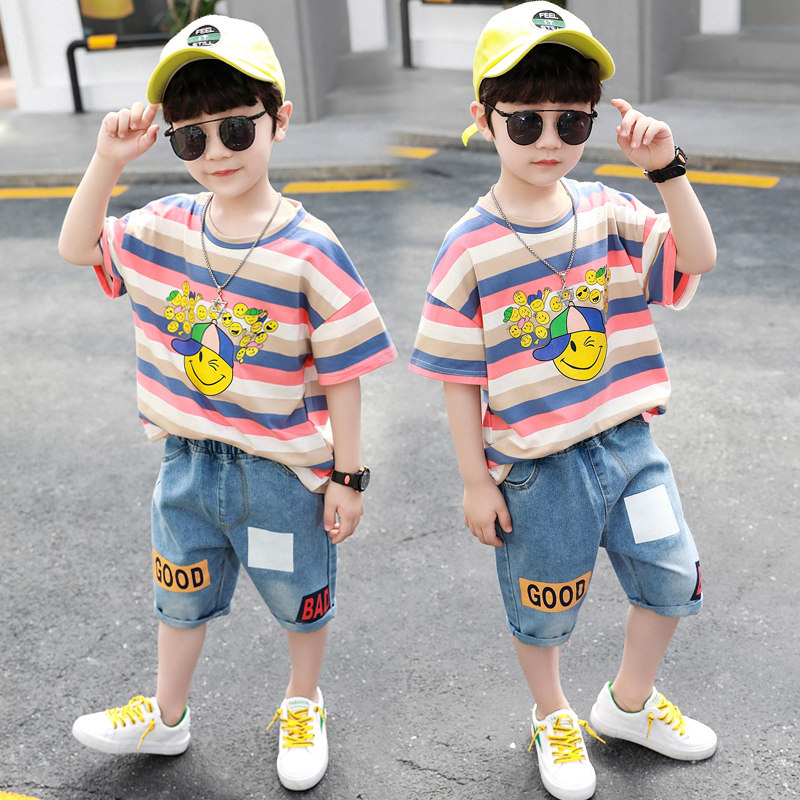 Boy's summer clothes suit 2022 new clothes 5 children suit 6 children 4 boys short sleeve foreign pie handsome 3 tides 8 years 7