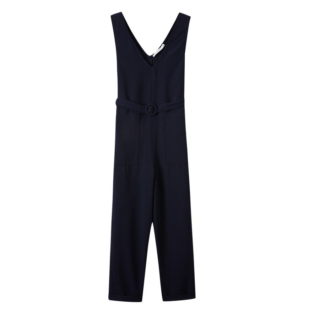 MECITY women's French simple fashion loose casual waist design Sleeveless V-neck baby bag jumpsuit