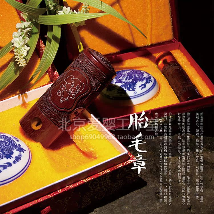 2019 Baby Baby Newborn Baby Hairs Chapter Baby Fetal Mark Memorial Wood Seal(Golden Pig Dog Gathering Money)