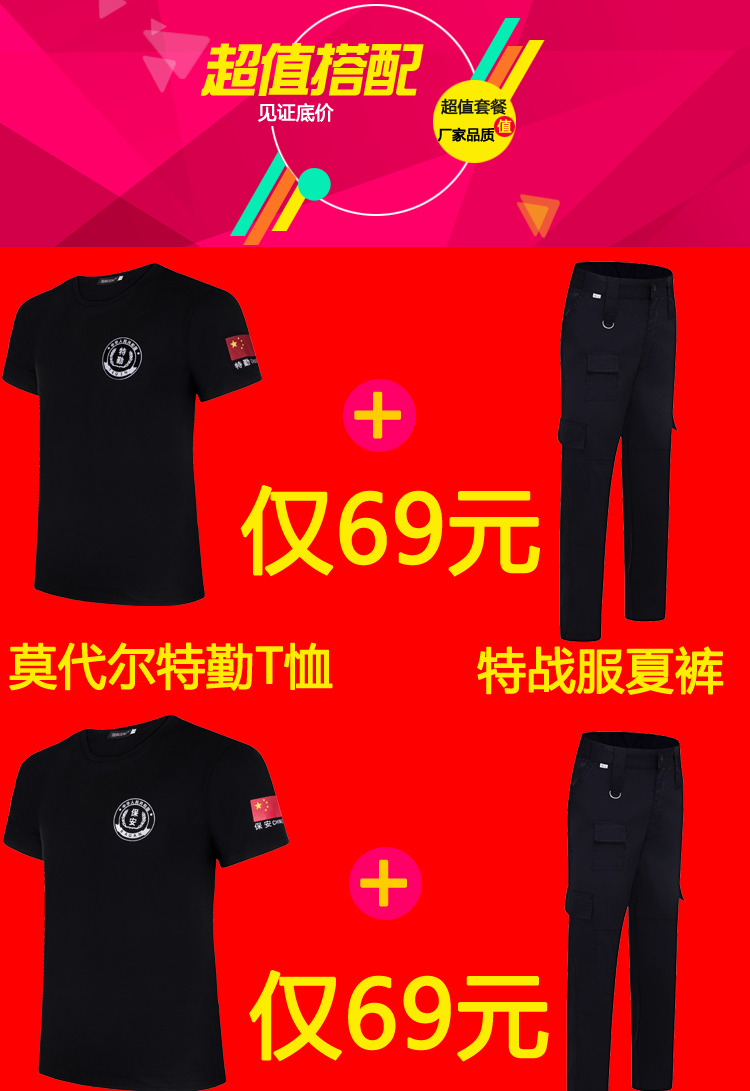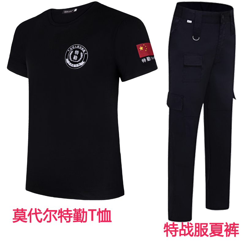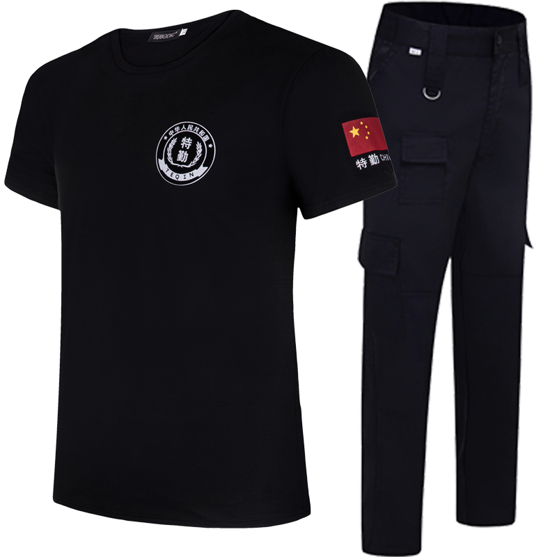 Large size code security work suit Men's black T-shirt Security T-shirt Male short sleeve clothes Summer job training T-shirt