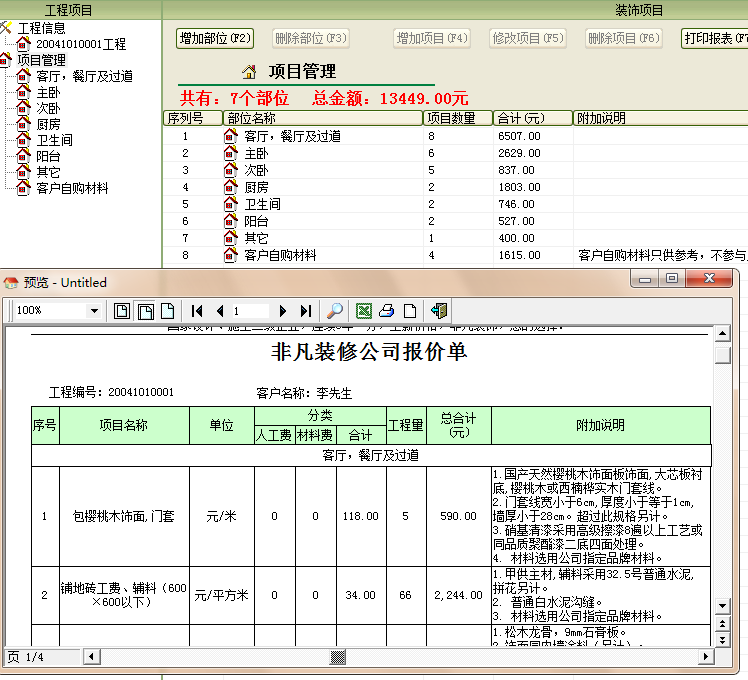Home improvement quotation software decoration company engineering design material budget printing quotation documents financial management system