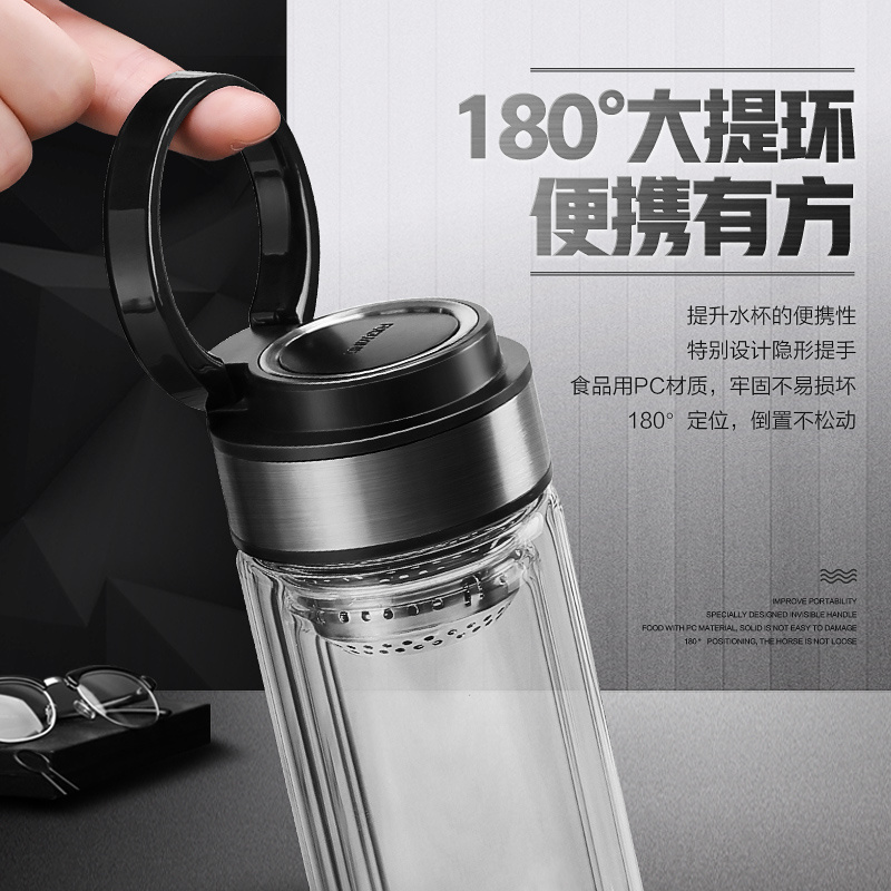 Fuguang glass large capacity double hand-folded tea cup portable men and women cart transparent glass cup