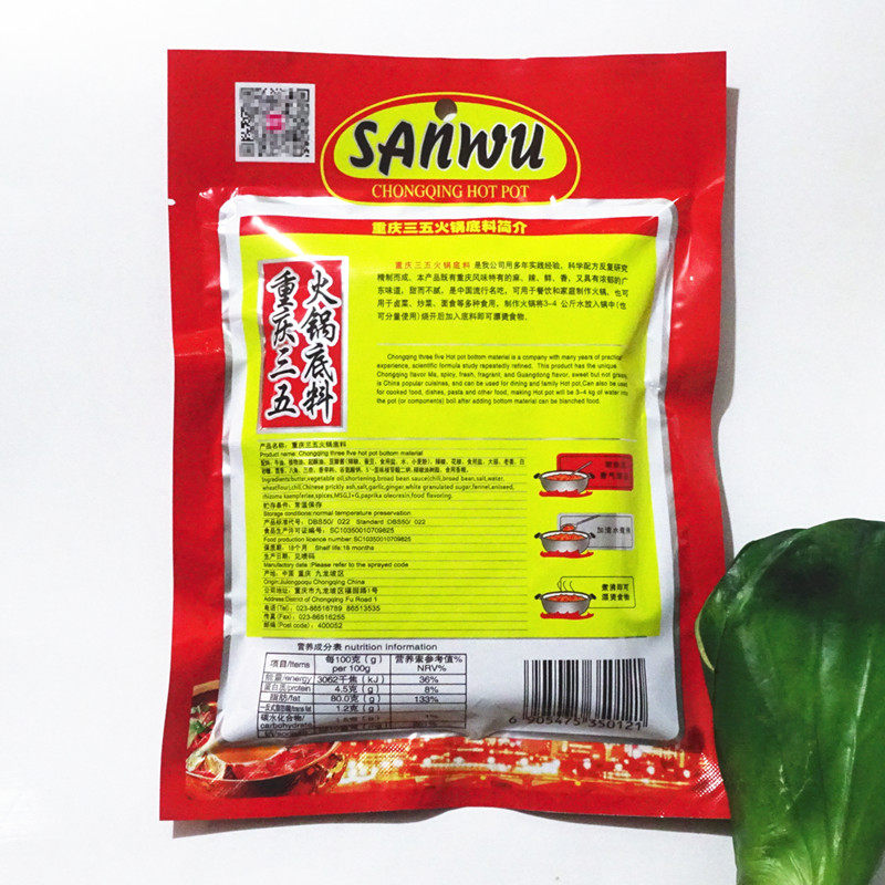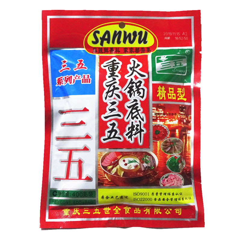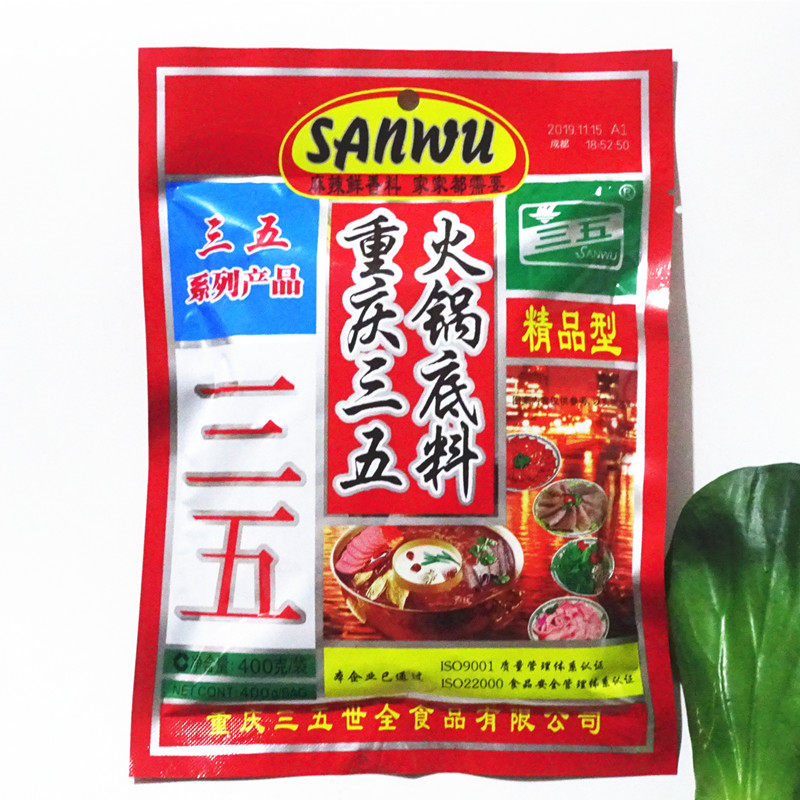The whole 32 bag Chongqing Three-five hot pot soup bottom 400g spicy hot and cold pot string of cooked and fried dishes for commercial use