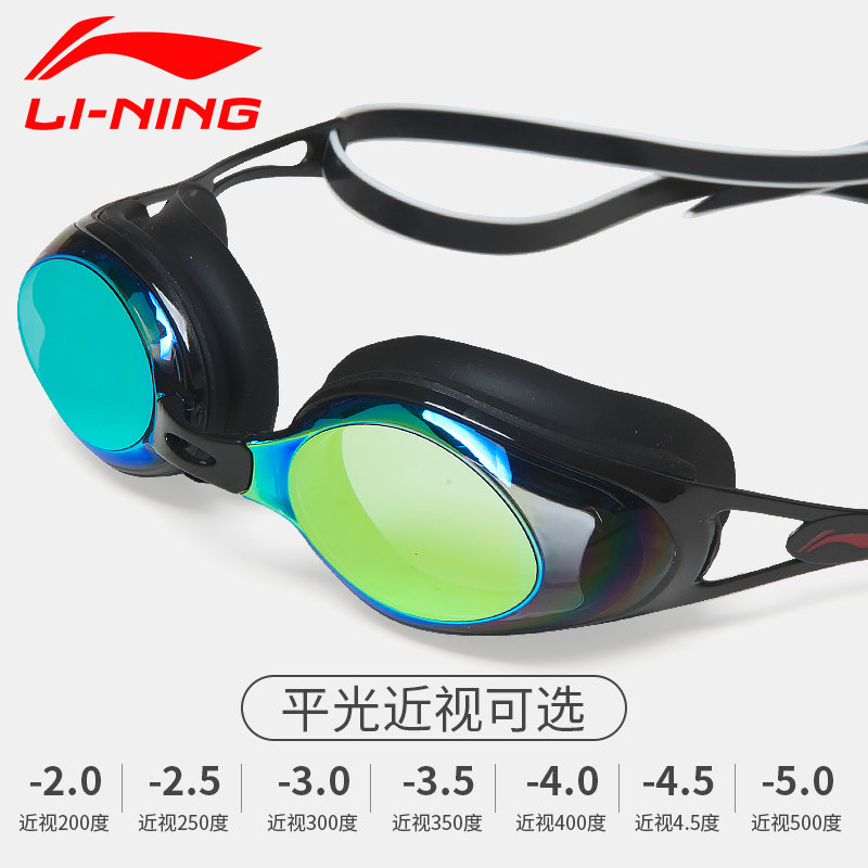Ms. Li Ning Swimming Goggles Lady Myopia Swimming Goggles Male Children Waterproof Anti-Fog High-definition Swimming Cap Big Frame Glasses Equipped Suit