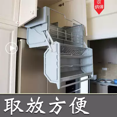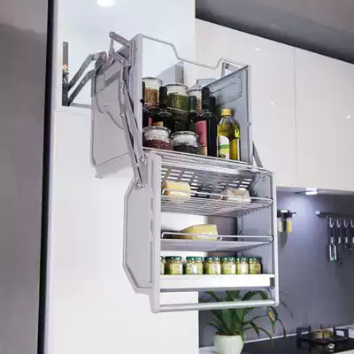 Hanging cabinet double body storage refrigerator top cabinet lifting basket large capacity lifting cabinet kitchen integral cabinet linkage lift