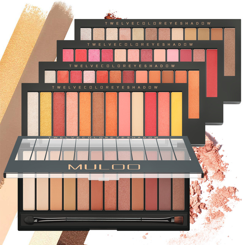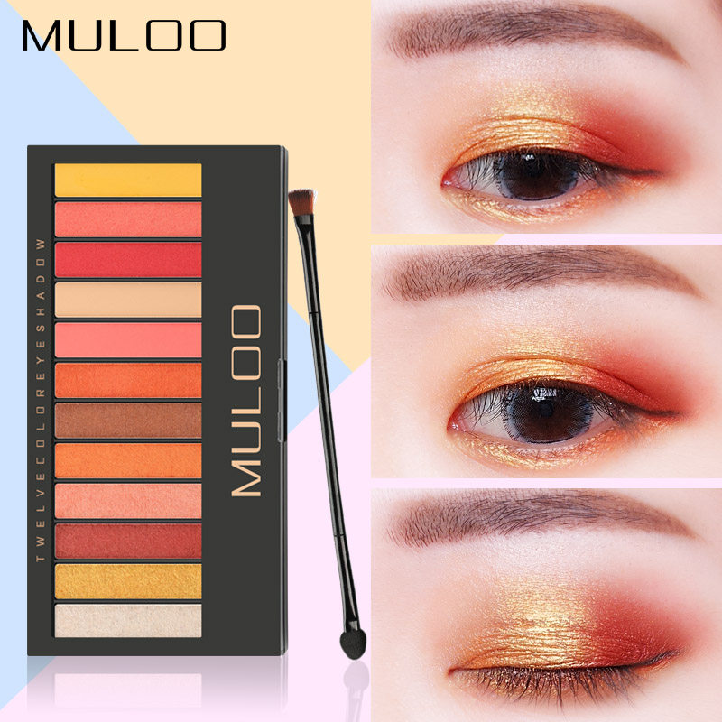 MULOO luxury 12 twelve-color eye shadow Sunset decay color pearlescent grapefruit pumpkin Earth Maple leaf color non-halo makeup