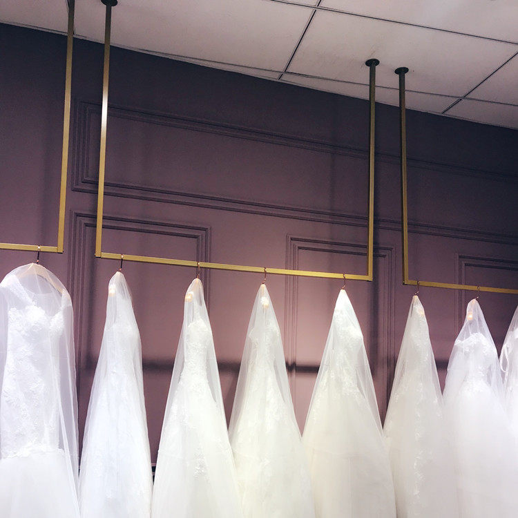 Clothing store hanging suspended ceiling shelf retro wedding dress hanger hanger custom-made on the wall boys and girls clothing rings display stand